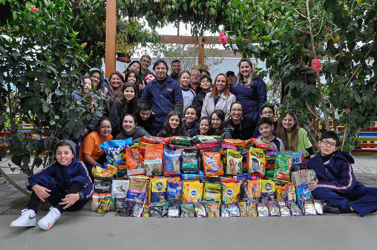 Escola de Pinhais doa 300 kg de ração para cachorros e gatos