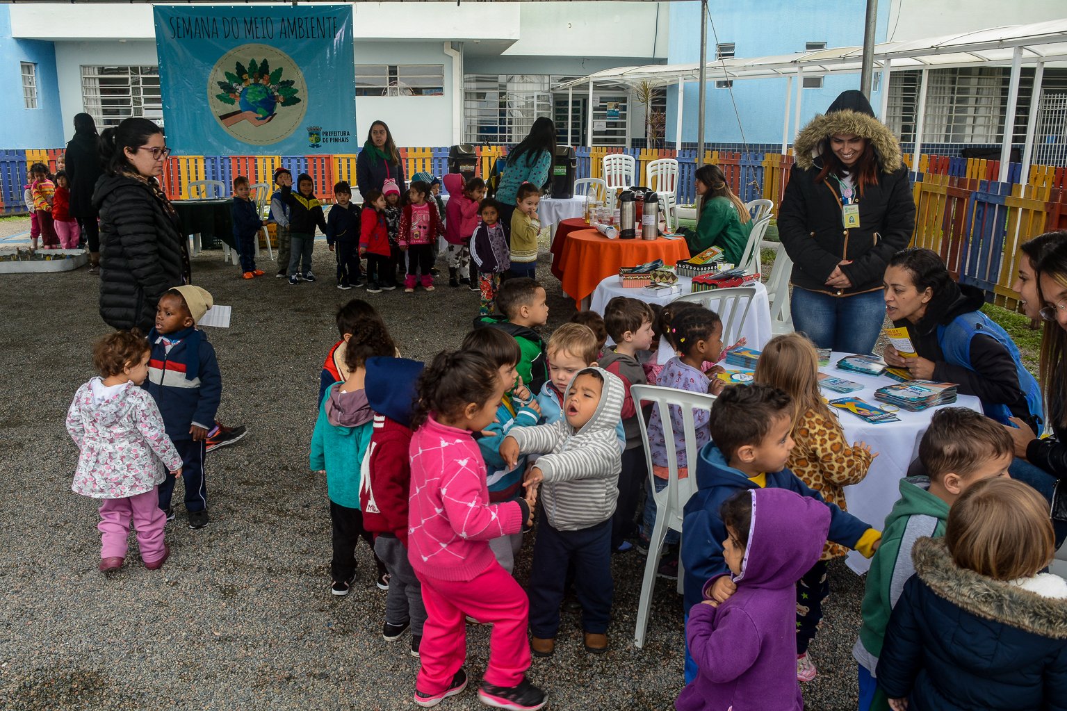 No CMEI foi instalada uma tenda para as secretarias municipais receberem os alunos, pais e moradores da comunidade. A equipe da Secretaria de Meio Ambiente fez a divulgação dos serviços de coleta de óleo usado e distribuição de detergente líquido (produzi (…)