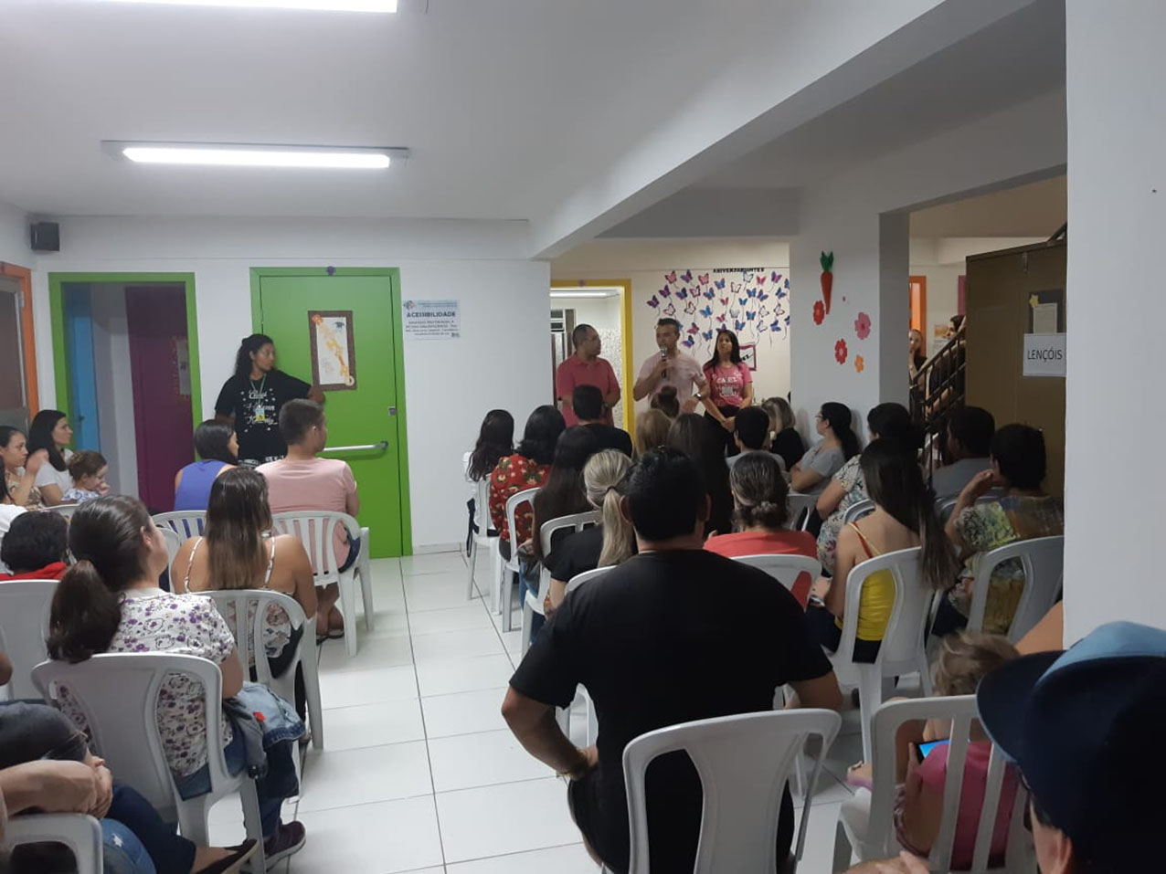 Mesmo de licença especial, o militar prontamente respondeu ao convite da diretora do CMEI e palestrou para quase duzentas pessoas. Na oportunidade, Rodrigo enfatizou a importância de a comunidade escolar envolver-se ativamente na segurança pública, juntamente com os órgãos que atuam no município – a Polícia Militar e a Guarda Municipal -, visando aproximar e manter contato com as forças de segurança, garantindo, desta forma, a efetividade do trabalho dos agentes.