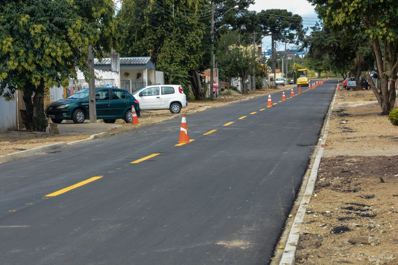 Foi entregue à população o asfalto definitivo em Concreto Betuminoso Usinado a Quente (CBUQ) em duas ruas de Pinhais. A conclusão dessas vias, localizadas nos bairros Estância Pinhais e Maria Antonieta, aconteceram com a pintura de faixas indicativas, troca de luminárias – mais intensas, econômicas e resistentes -, e instalação de placas em locais apropriados.