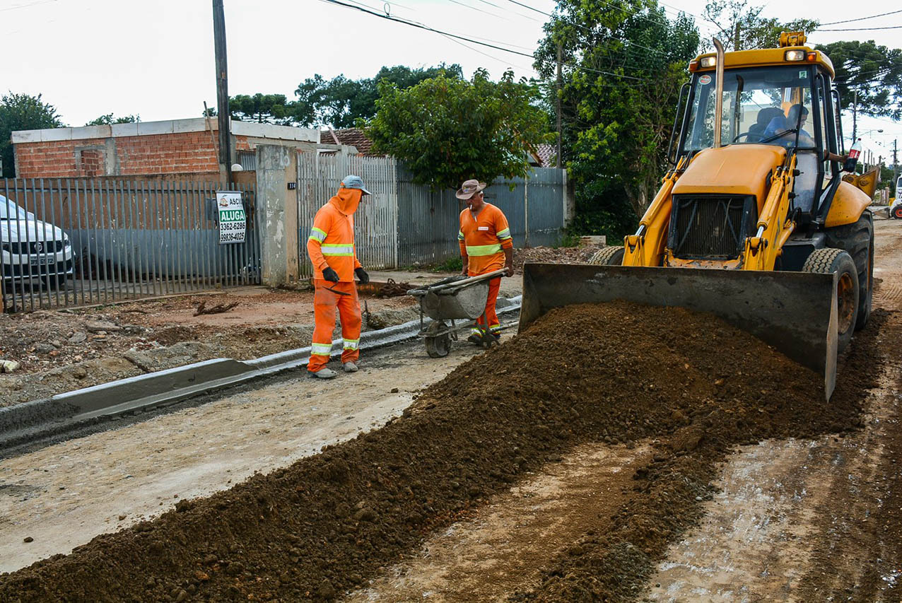 Obras de pavimentação na Rua Laura Lopes dos Santos, em Pinhais, continuam aceleradas