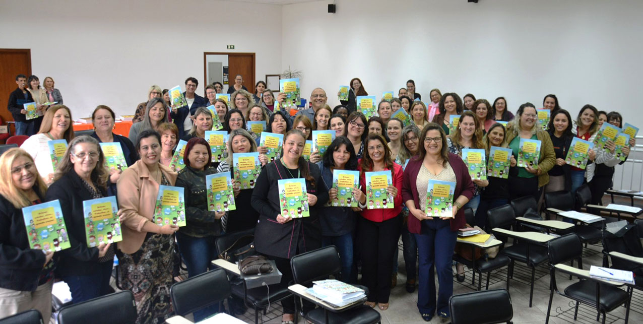 Para atender a uma das ações propostas pelo Comitê Intersetorial das Ações Estratégicas do PETI, no dia 4 de outubro, durante a reunião das diretoras das Escolas e Cmeis do município, a Secretaria Municipal de Assistência Social fez a entrega da revista “Brincar, Estudar, Viver… Trabalhar só quando crescer”. O material será distribuído e utilizado nas unidades de ensino da rede municipal para debater com as crianças a respeito do tema.