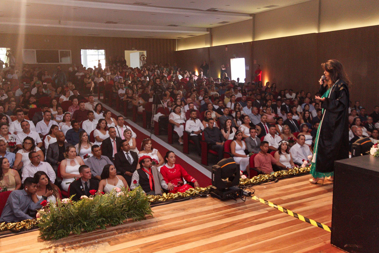 A cerimônia aconteceu no Centro de Formação dos Profissionais da Educação (Cenforpe) e celebrou a união de 79 casais. A troca de alianças foi presenciada por padrinhos, convidados e familiares. A cerimônia ecumênica foi realizada pela idealizadora e coordenadora do Programa Justiça no Bairro, a desembargadora Dr.ª Joeci Machado Camargo. O evento também teve a presença da prefeita Marli Paulino, da vice-prefeita (…)