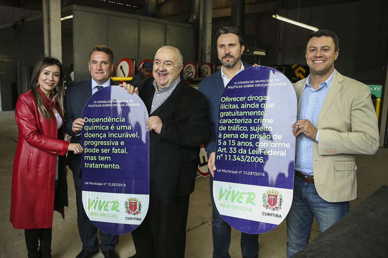 Instalação de placas sobre o risco das drogas começa pela Praça Osório, em Curitiba