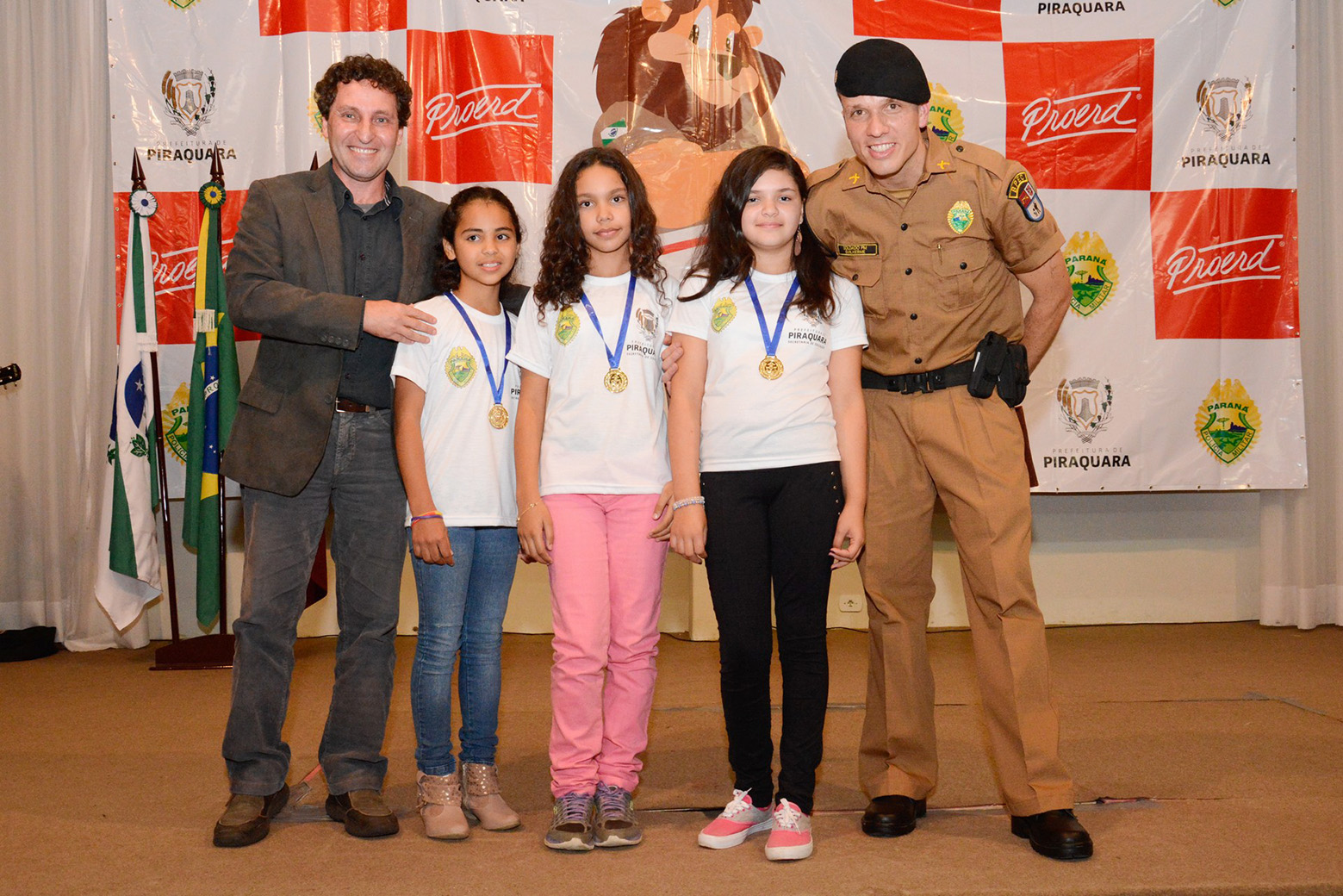 Nesta semana, nas noites dos dias 27 e 28, alunos do 5º ano de Escolas Municipais de Piraquara participaram da formatura do PROERD, Programa Educacional de Resistência às Drogas e à Violência, realizado pela Polícia Militar, em parceria com a Prefeitura Municipal, após anos sem acontecer. No total, 700 alunos, com idades de 9 a 11 anos, participaram do Programa. Os policiais militares que ministram as aulas nas escolas são rigorosamente selecionados e preparados por educadores para realizar este trabalho.