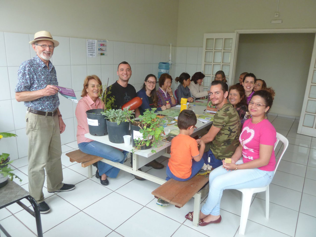 Como parte da programação, o grupo visitou a propriedade de Maurilio e Maria de Mello, que participam do Projeto “Horta no Quintal de Casa”, momento em que puderam conhecer o trabalho desenvolvido em uma pequena área, bem como o uso de recipientes (caixas, baldes, vasos, canos) para o plantio e produção de hortaliças, plantas condimentares e plantas medicinais. Na oportunidade, também compartilharam informações sobre o manejo e preparo de espaços para esse trabalho como um desafio, em especial, para as pessoas que moram em apartamentos.