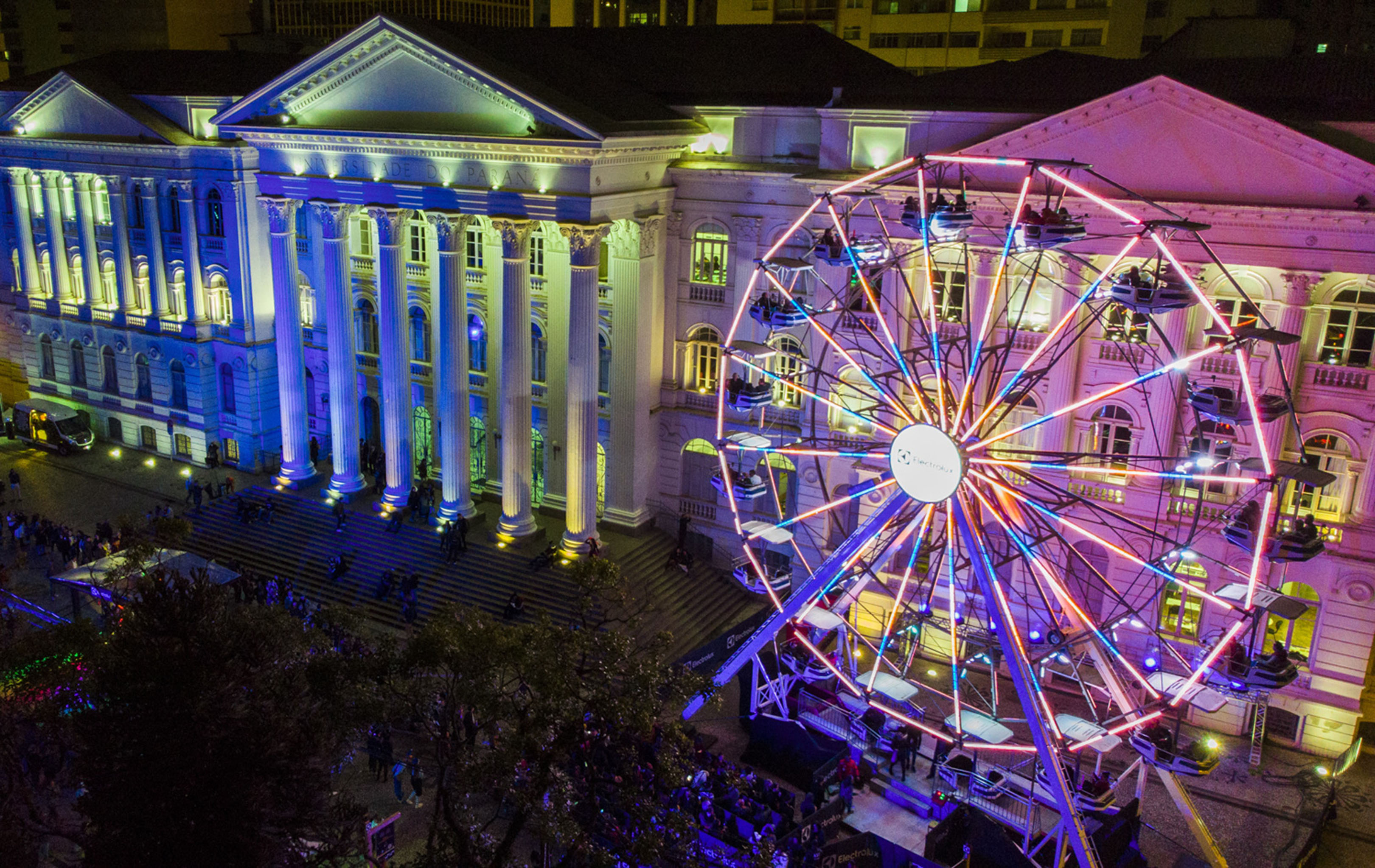 Desde que a Vila de Natal Electrolux foi montada, há mais de duas semanas, a Praça Santos Andrade se transformou num grande parque de diversões com roda-gigante, luzes piscantes, Casa do Papai Noel e feira gastronômica. Os atrativos chamam a atenção de quem circula pelo centro e dos turistas que lotam a cidade nesta época do ano.