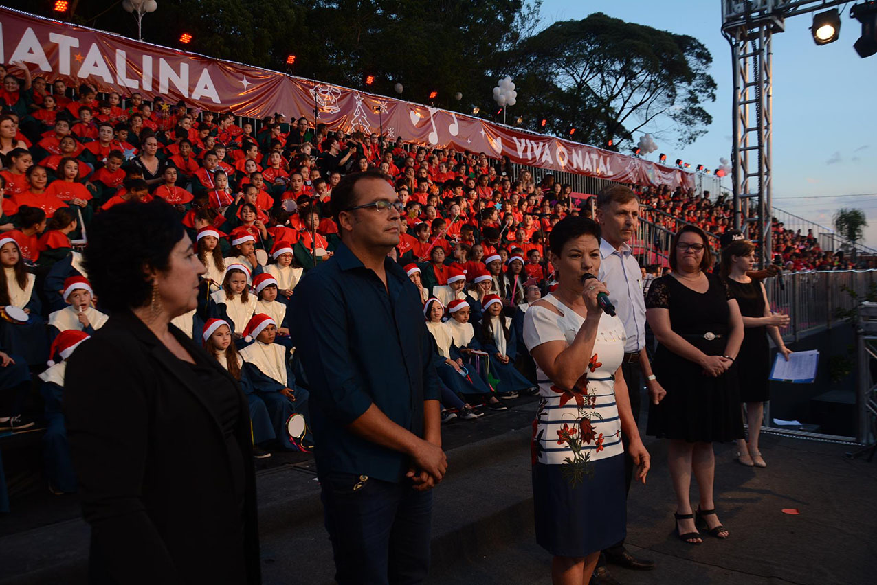 A Cantata foi um espetáculo magnífico, emocionando a todos os presentes com belas canções natalinas, entoadas por cerca das mil vozes que fazem parte do Projeto Coral Música Viva. Com o tema “Natal, uma celebração de amor”, a Cantata Natalina é coordenada pela Secretaria de Educação. Realizada pelo 13º ano consecutivo, a apresentação da cantata envolveu um grande número de pessoas no preparo de todo o espetáculo. Durante a abertura, a secretária de educação Andrea Franceschini enalteceu o trabalho realizado. “Ficamos muito felizes em fazer esta grande festa acontecer. São meses de preparação, muitos funcionários envolvidos para que tudo aconteça da melhor forma possível”, destacou a secretária.