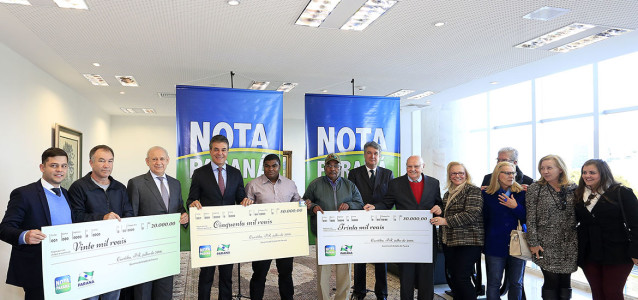 Foto: Arnaldo Alves / ANPr. Os prêmios de R$ 50 mil, R$ 30 mil e R$ 20 mil foram entregues pelo Governador Beto Richa, na terça-feira, dia 19, no Palácio IguaçuLeia Mais »