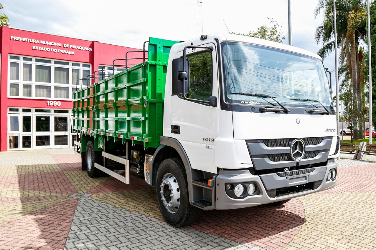 O caminhão Mercedes Benz, modelo Atego 1418, é apropriado para o transporte de cargas em curtas e médias distâncias em regiões urbanas e rurais. O veículo vai reforçar a frota da Prefeitura, “Vamos ampliar a nossa capacidade de coleta e agilizar o atendimento da poda verde. Faz parte da estruturação e equipamento da Secretaria de Meio Ambiente e Urbanismo”, destacou o Prefeito Marcus Tesserolli, o Marquinhos.