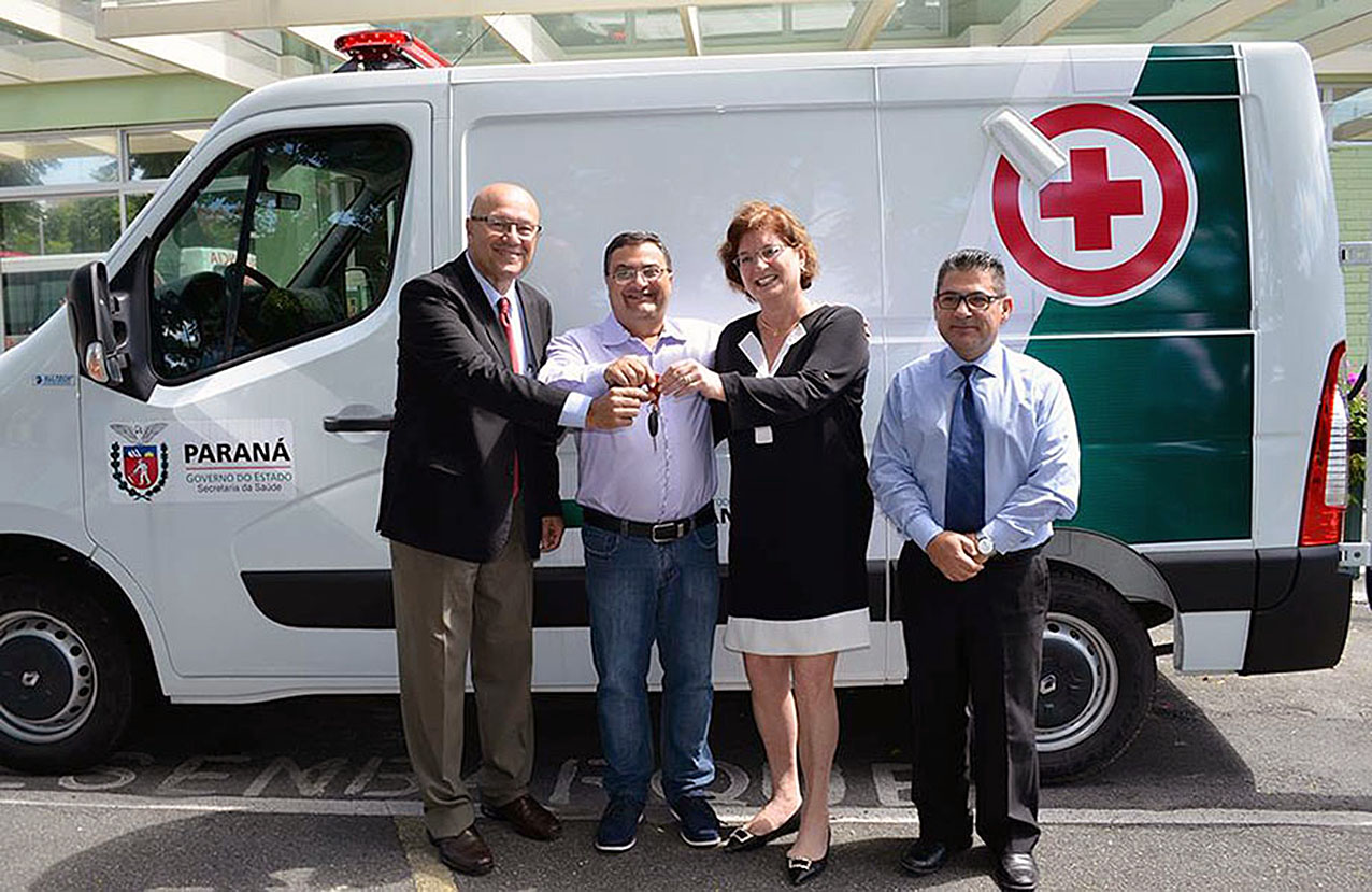 A Prefeita de Colombo, Beti Pavin recebeu a chave da nova ambulância das mãos do Secretário Estadual de Saúde, Michele Caputo, na manhã do dia 08, terça-feira. Participaram também da cerimônia de entrega o Secretário Municipal de Saúde, Darci Martins Braga e o Deputado Estadual, Luiz Cláudio Romanelli.