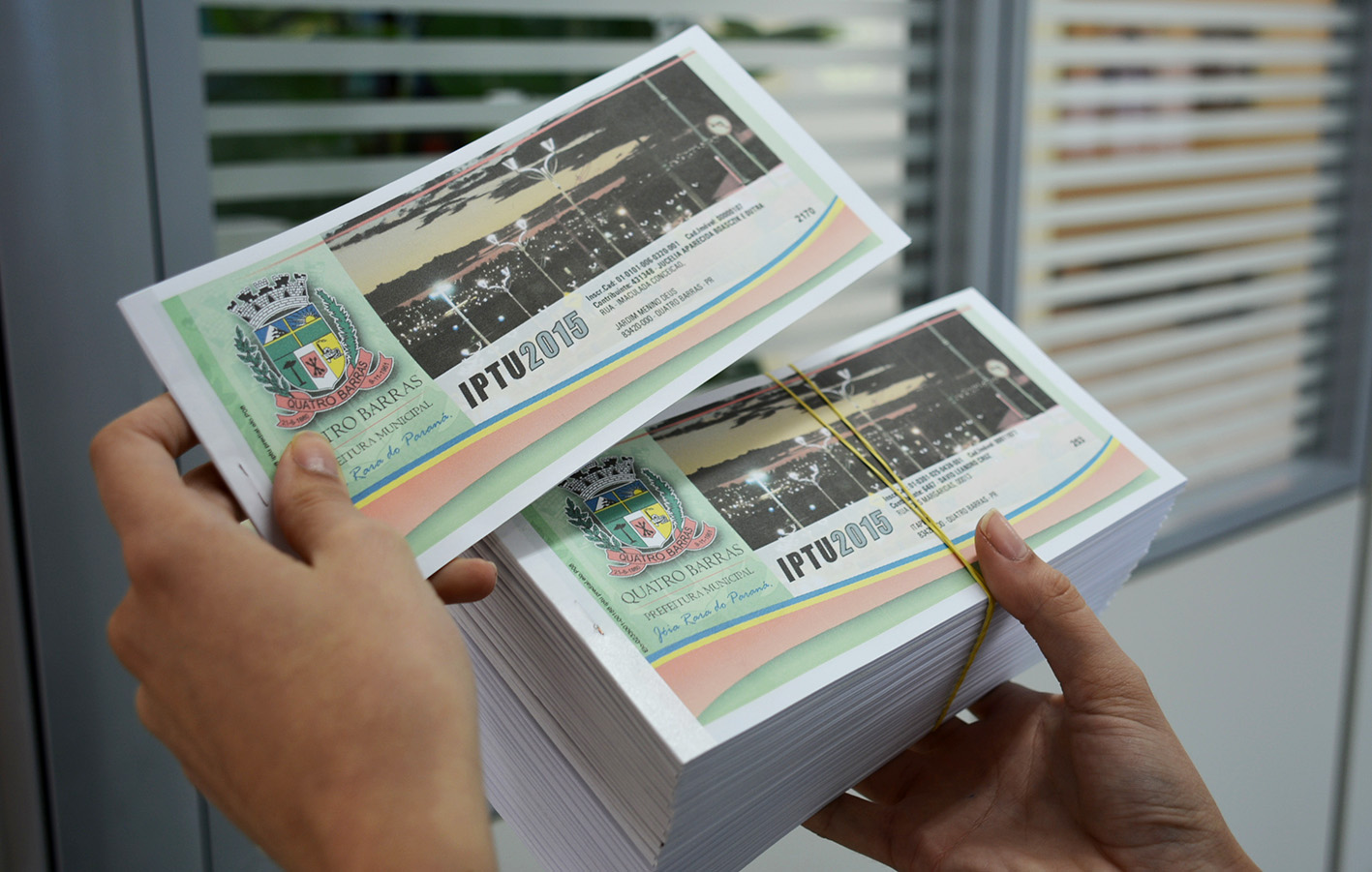Os contribuintes de Quatro Barras estão recebendo os carnês do Imposto Predial e Territorial Urbano (IPTU) de 2015. A novidade deste ano é o desconto para pagamento em cota única, que será de 20% – o dobro do concedido no ano passado. O vencimento da cota única e da primeira parcela será no dia 11 de maio. Os contribuintes que optarem pelo parcelamento poderão quitar o imposto em até oito vezes.