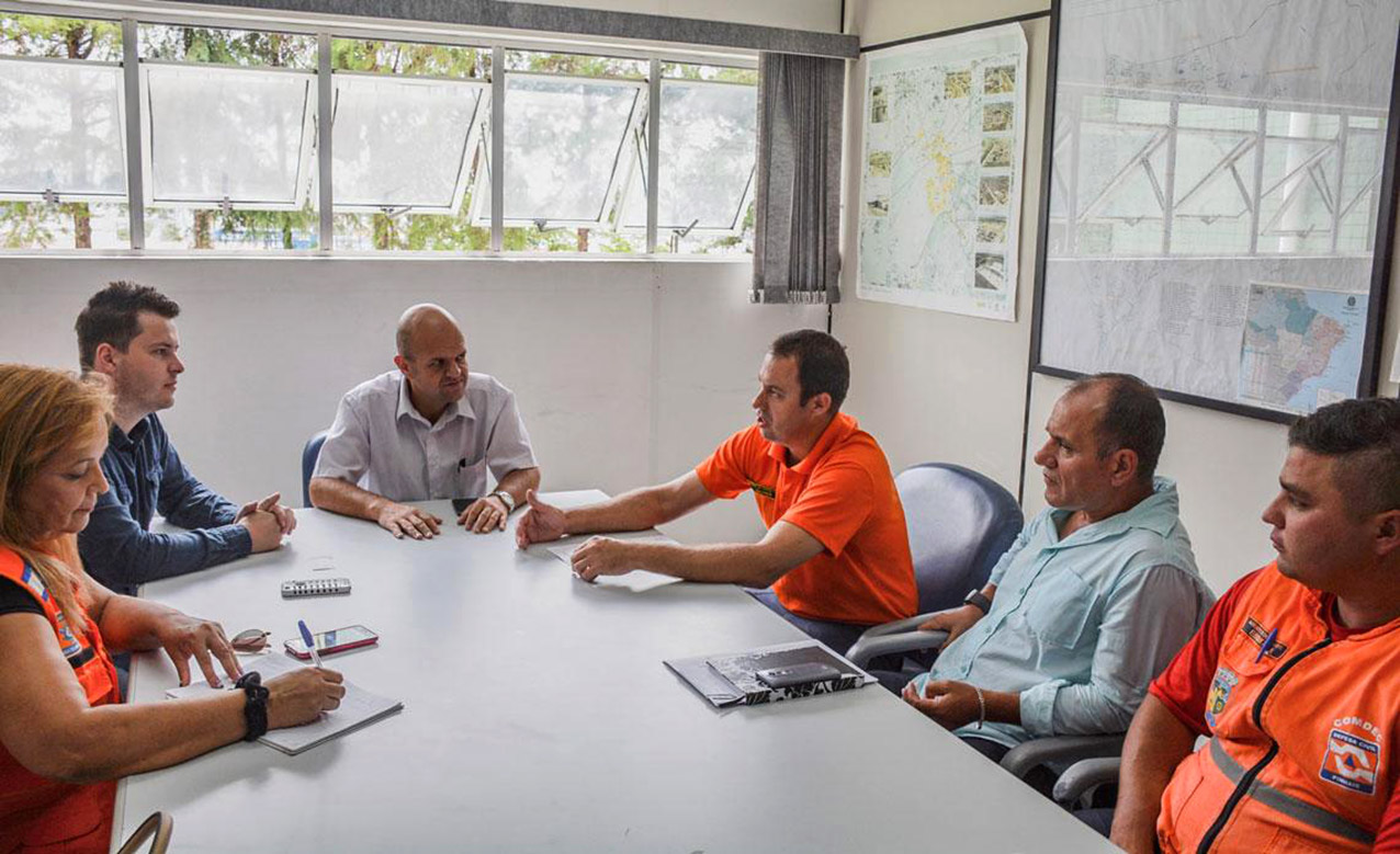 Estiveram presentes no encontro, Sidnei Roberto Zaunir e David Esquitini da Defesa Civil de Pinhais, o secretário de Governo de Pinhais, Ricardo Pinheiro, o secretário de Governo, Indústria, Comércio e Trabalho de Quatro Barras, Leonardo Presa, e a coordenadora de Proteção e Defesa Civil de Quatro Barras Rosamaria Ferreira Duarte.