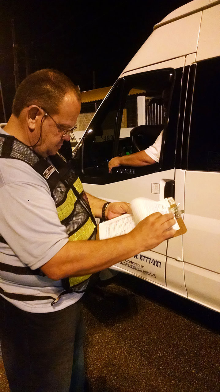 Nas abordagens dos serviços de fretamento os agentes verificam a documentação da empresa (registro), do veículo (registro, seguro), da viagem (licença, lista de passageiros, nota, contrato de prestação de serviço) e do motorista (habilitação, curso e carteira de saúde), assim como equipamentos obrigatórios, como cintos e tacógrafo.