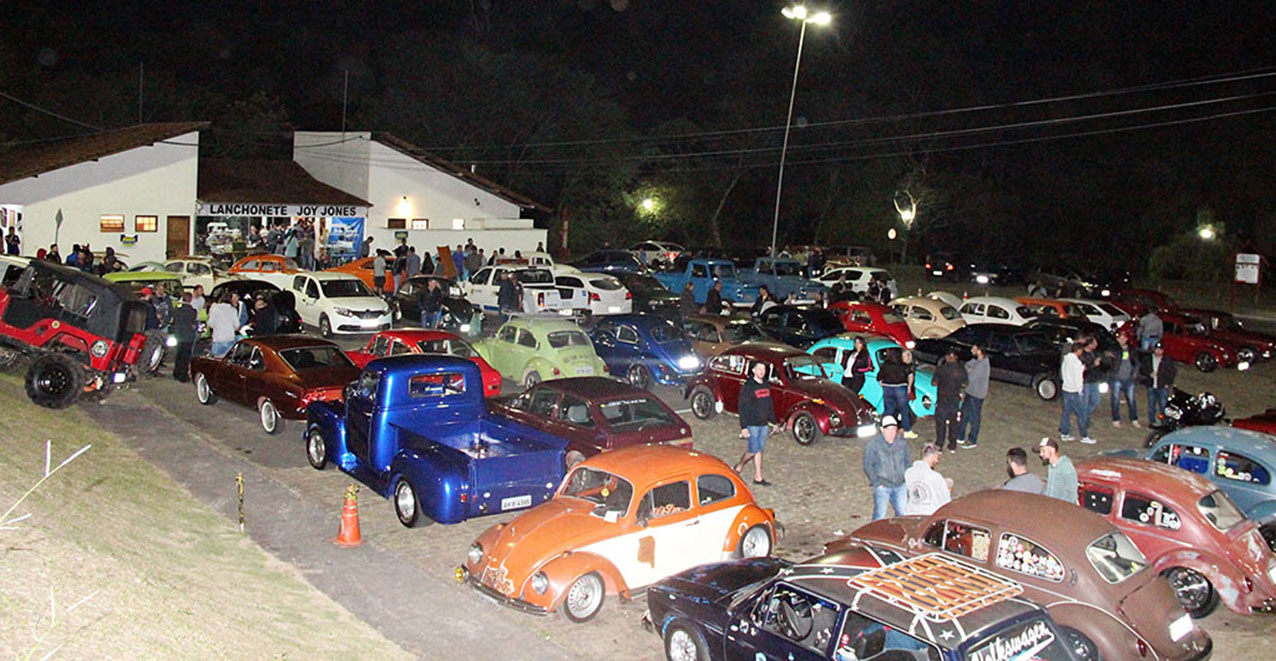 Na sexta-feira, dia 6, os amantes de carros antigos tiveram mais uma oportunidade de interação e descontração com o Encontro Noturno de Velharias Old Car. O evento reuniu diferentes modelos de carros e tinha como objetivo uma arrecadação beneficente. Para tanto, a entrada foi solidária recebendo um quilo de alimentos ou uma peça de roupa.