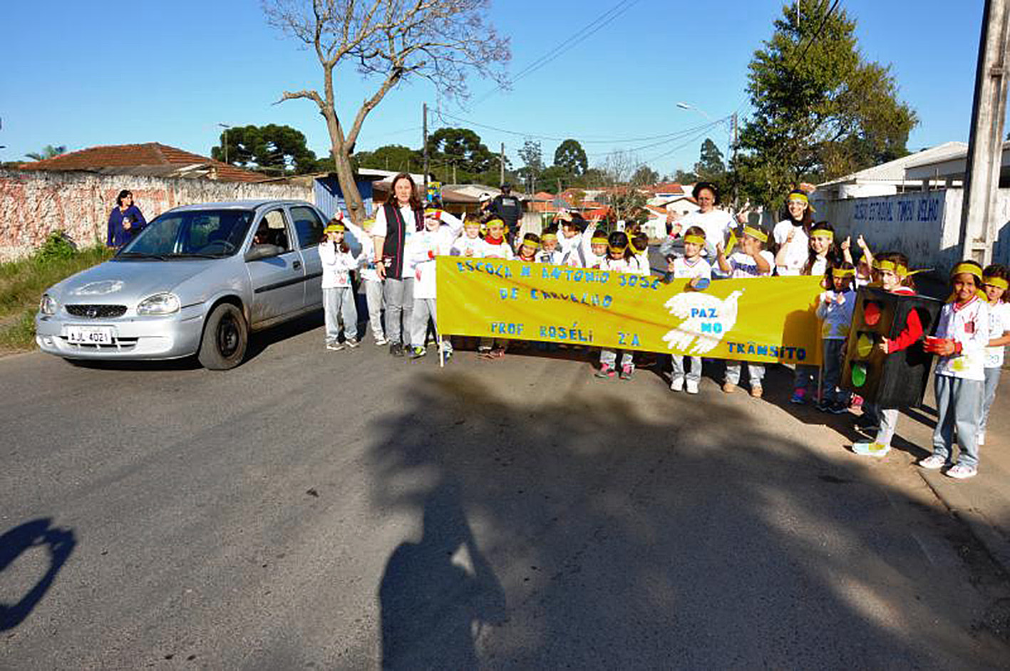 Na manhã desta terça-feira (9), alunos do 2ºA da Escola Municipal Antônio José de Carvalho, no Jardim Ceccon, realizaram uma blitz na esquina entre as ruas Professora Marilene Aide Coradim e Jacob Ceccon, com o tema Trânsito Seguro. Com o apoio da Guarda Municipal, as crianças entregaram informativos e adevisos aos motoristas alertando sobre os cuidados que devem ser tomados no trânsito.