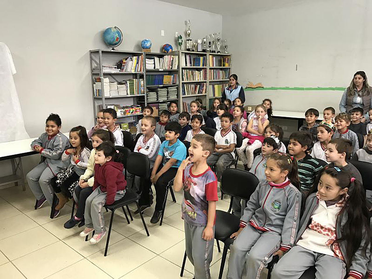 Os alunos utilizaram os livros da coleção Mundinho para ilustrar o trabalho. Eles construíram cartazes com recorte e colagem, fizeram ilustrações com tintas e cola colorida e montaram um mural para exposição dos cartazes simbolizando a igualdade, sem preconceito.
