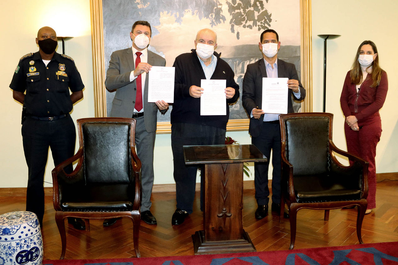 A Secretaria da Segurança Pública do Paraná e a Prefeitura de Curitiba assinaram um termo de cooperação técnica para compartilhamento de dados e informações de inteligência. O convênio foi assinado na quinta-feira (13), pelo secretário da Segurança Pública, Rômulo Marinho Soares; pelo prefeito Rafael Greca e pelo secretário municipal de Defesa Social e Trânsito, Guilherme Rangel. Com isso, a Secretaria da Segurança Pública passa a contar com 22 municípios conveniados para compartilhamento de dados, abrangendo mais de 5,4 milhões de pessoas.