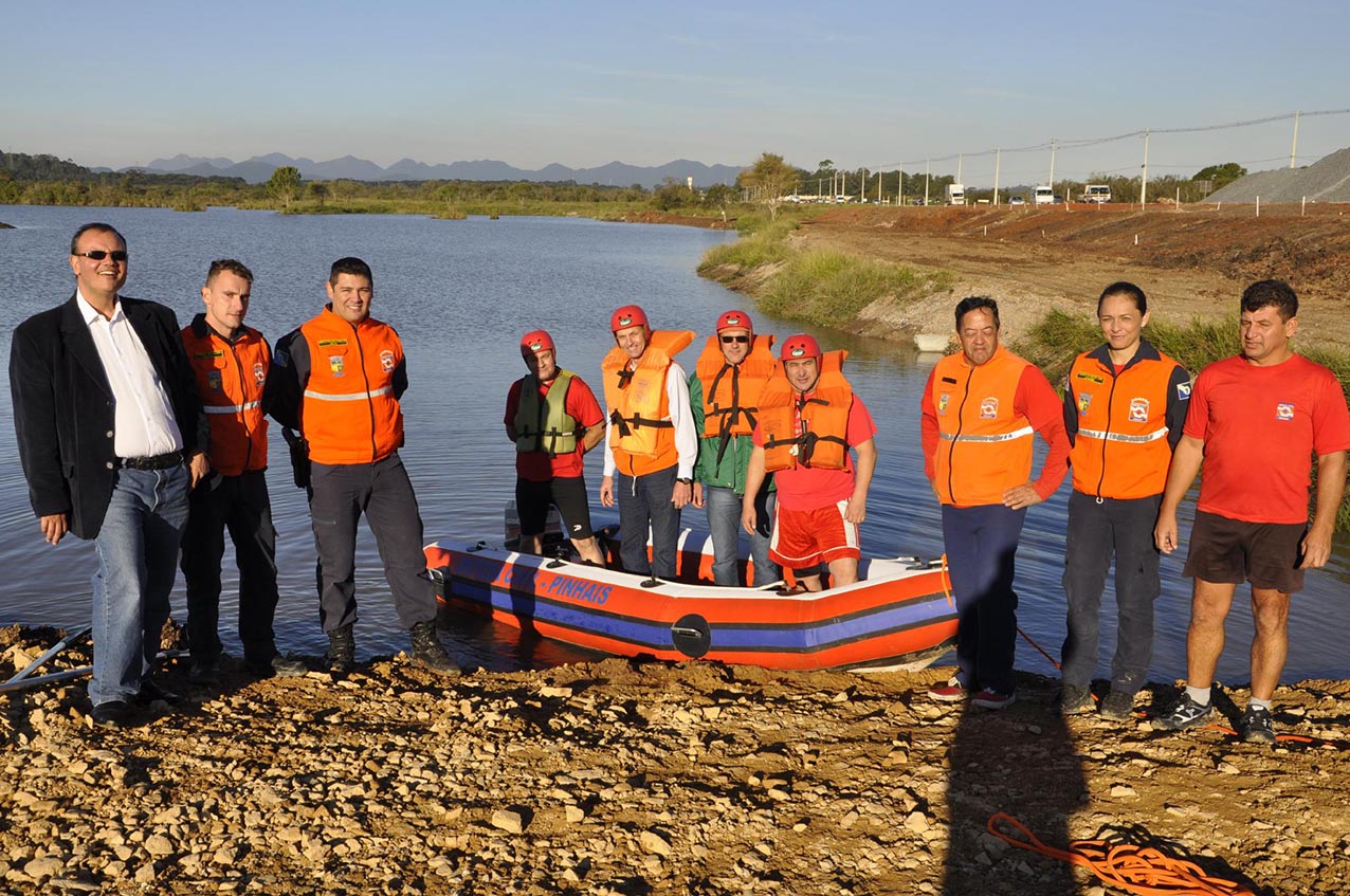 Na semana passada, a Defesa Civil de Pinhais recebeu um bote inflável que será utilizado nas ações preventivas de combate às enchentes. O equipamento foi adquirido por meio do Fundo de Reaparelhamento do Corpo de Bombeiros (Funrebom).