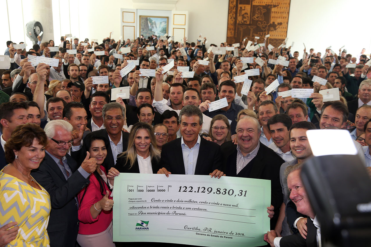 Na semana passada, mais de 300 prefeitos do Paraná foram recebidos pelo Governador Beto Richa no Palácio Iguaçu para o repasse de R$ 122 milhões de uma cota extra de ICMS. O valor refere-se ao pagamento do imposto já devido por empresas que receberam incentivos fiscais em projetos de investimentos no Estado.