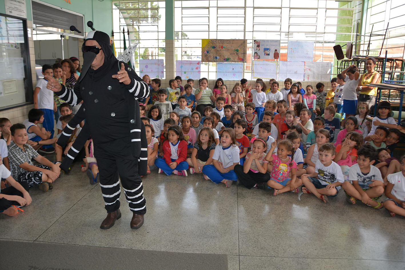 Os alunos da Escola Municipal Aroldo de Freitas assistiram a apresentação teatral encenada pelo Grupo Hiperdia