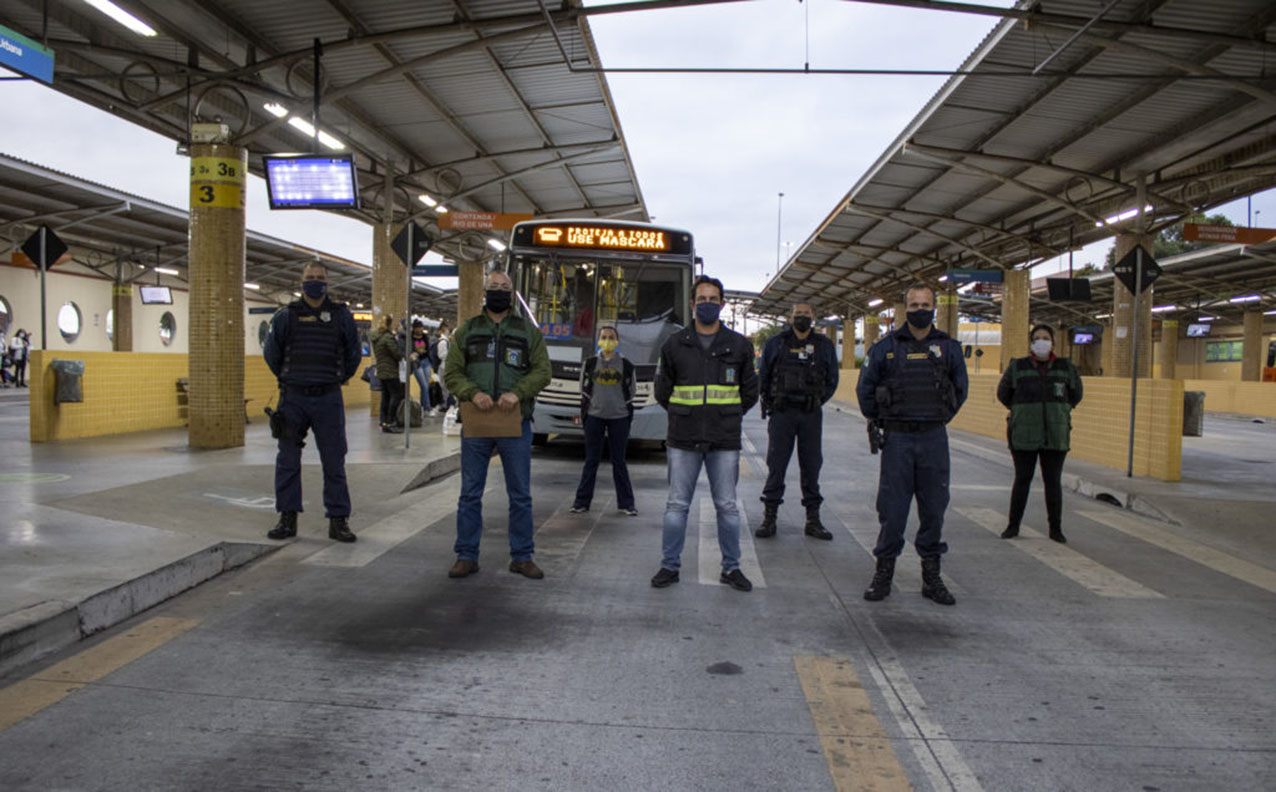A ação contou com a presença da Guarda Municipal e Vigilância Sanitária orientando a população que estava presente nos terminais sobre o uso correto da máscara