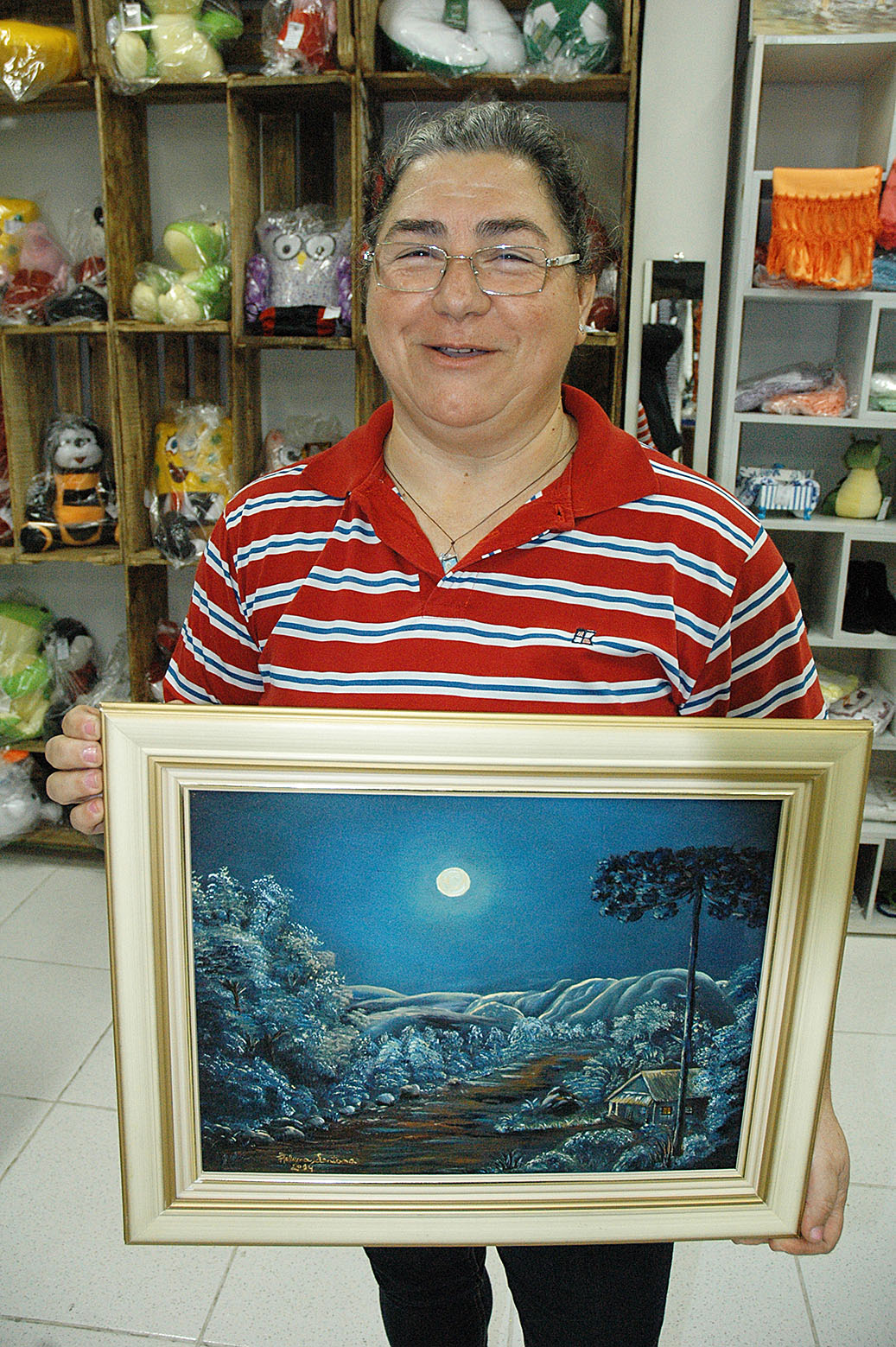 Bastante entusiasmada com a nova fase, participou de uma oficina de pintura no Centro Cultural, evento em que os três primeiros colocados eram premiados com tintas, telas e molduras. A obra vencedora, entre as mais de 60 participantes, foi a intitulada “O MAR”, que ,atualmente, está exposta na casa da artista.