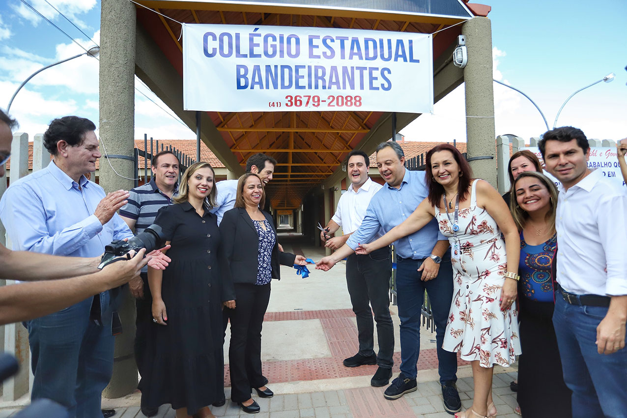 Os cerca de 700 alunos do Colégio Estadual Bandeirantes, em Campina Grande do Sul, na Região Metropolitana de Curitiba, começaram o ano letivo de 2020 em uma escola nova. O governador Carlos Massa Ratinho Junior e o prefeito Bihl Zanetti inauguraram, na quinta-feira, dia 13, a nova sede do colégio, que fica no Jardim Paulista e recebeu investimentos de R$ 4,6 milhões para a construção e mais R$ 250 mil em equipamentos. A obra havia sido paralisada em 2015 pelas investigações da Operação Quadro Negro.