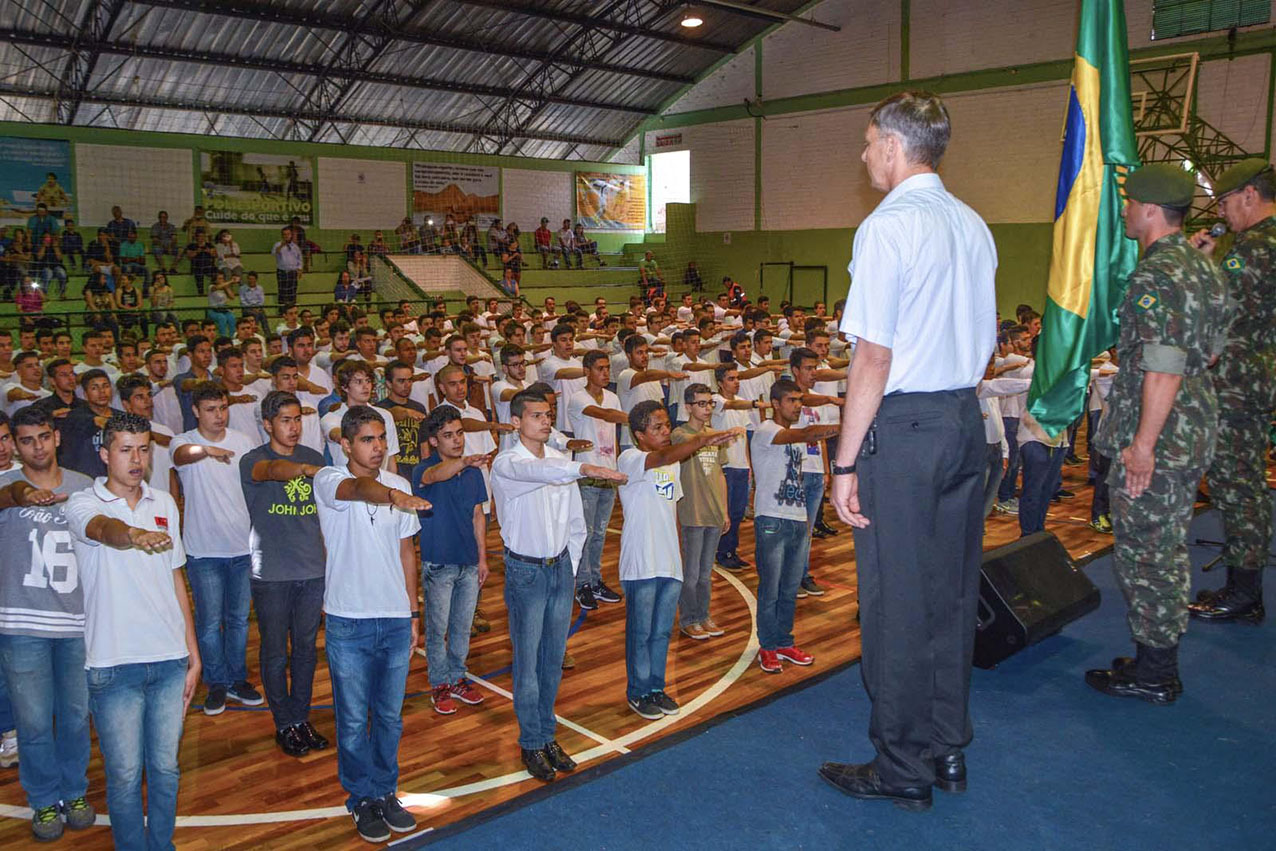 Centenas de jovens nascidos no ano de 1998 se apresentaram na terça-feira (18) para prestar Compromisso à Bandeira Nacional, como prova de fidelidade à Pátria e à Constituição, e receber o documento de reservista. A cerimônia de entrega dos certificados de dispensa do Serviço Militar foi realizada pela Junta de Serviço Militar de Pinhais, no Ginásio Poliesportivo Tancredo de Almeida Neves.