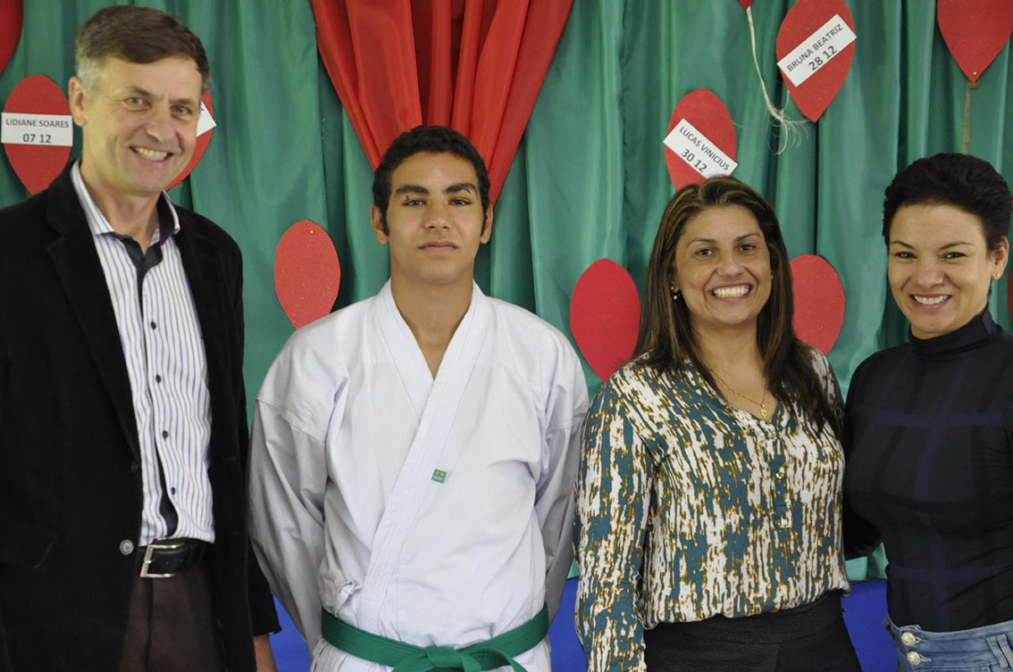 O atleta Lucas Mendes sagrou-se campeão brasileiro na categoria katá e alcançou também o 2º lugar na categoria kumitê. “A categoria katá consiste na execução de movimentos pré-determinados, simulando uma luta imaginária contra um ou vários oponentes, ao passo que a categoria kumitê consiste na luta real contra um adversário, julgada por pontuação”, explica o atleta.