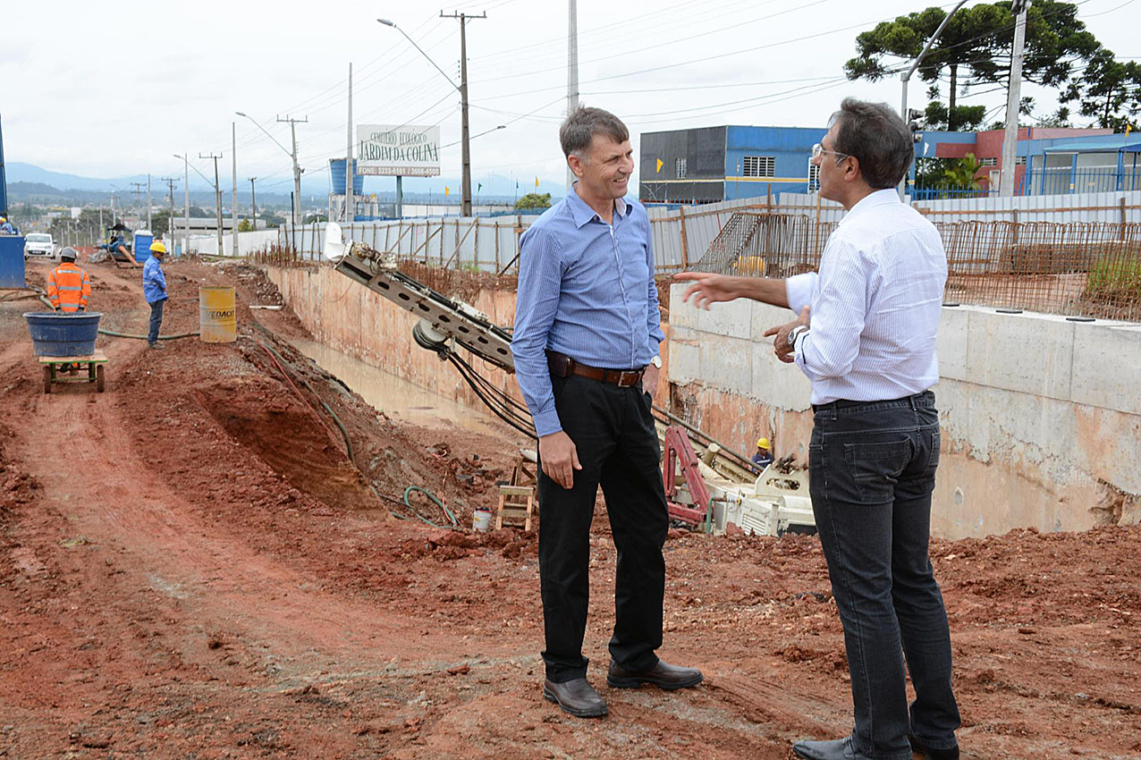 Construção de trincheira é acompanhada de perto pelo Secretário de Infraestrutura do Estado e os prefeitos de Pinhais e Piraquara