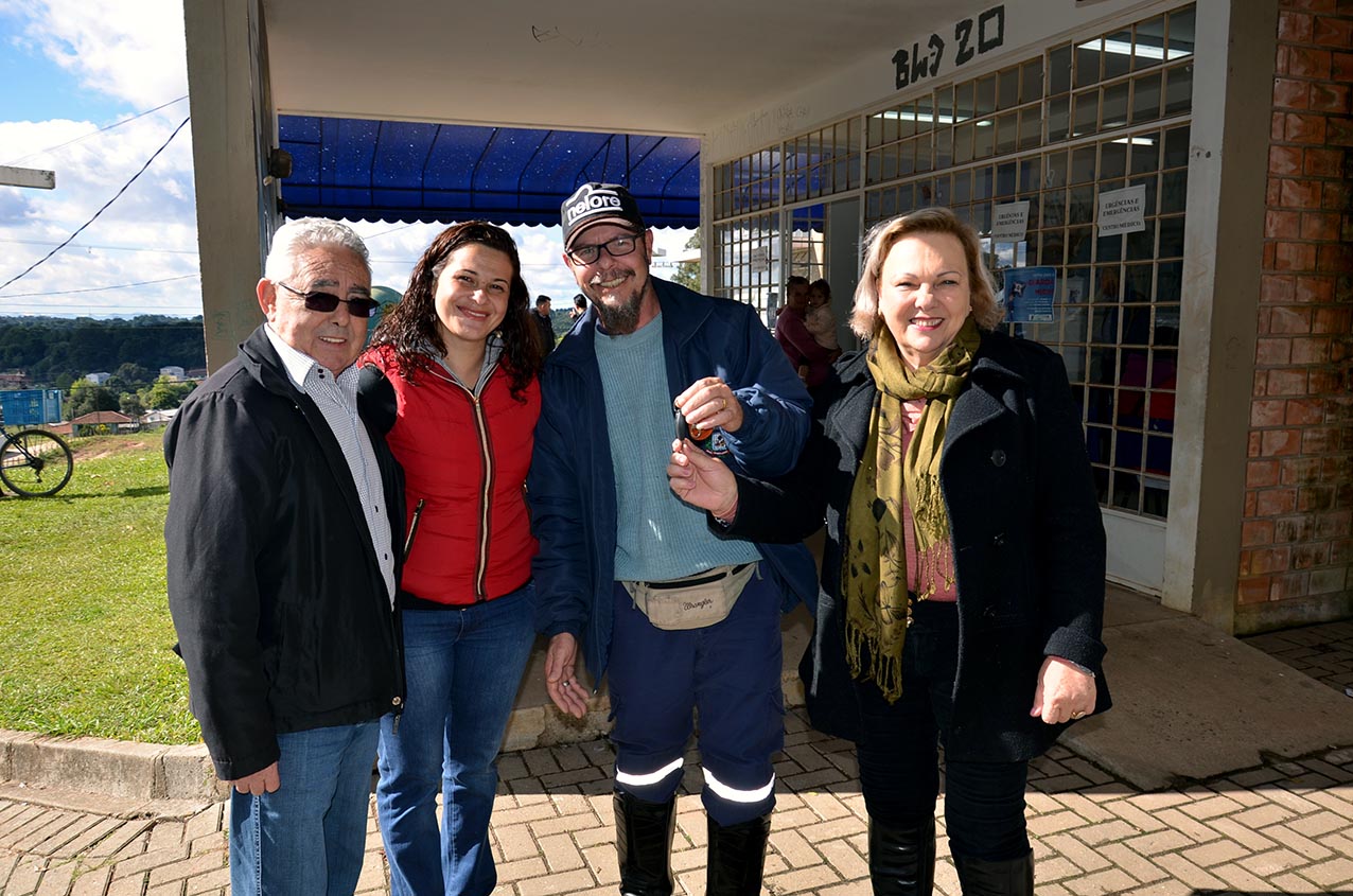 No momento da entrega, um dos motoristas da ambulância, Gervasio Tuiller, conversou com o prefeito e autoridades, destacando a importância de ter um veículo novo e bem equipado para o transporte.