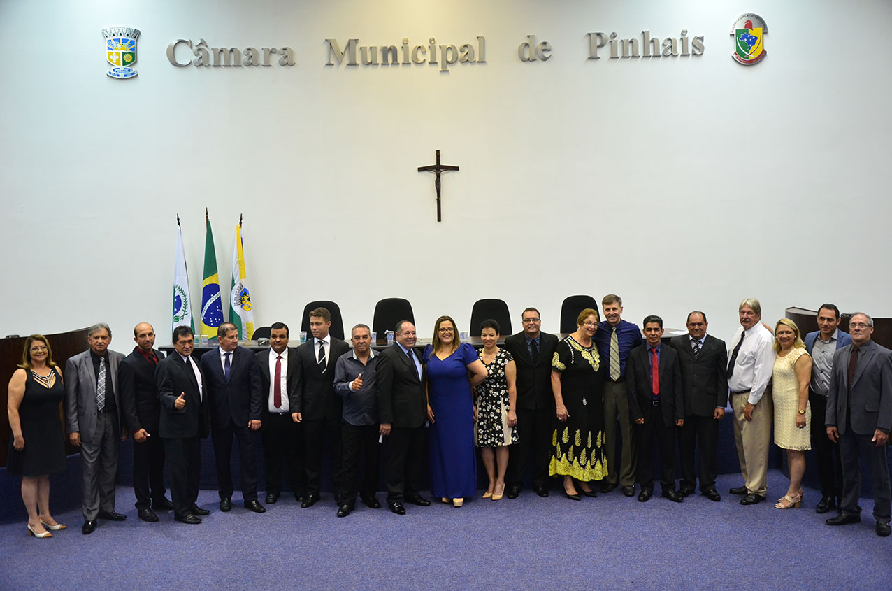 A Prefeita eleita Marli Paulino Fagundes (PDT), a Vice-Prefeita eleita Rosa Maria de Jesus Colombo (PROS) e os vereadores eleitos de Pinhais foram empossados na manhã de 1º. de janeiro, em solenidade na Câmara Municipal. O Vereador reeleito Agilson Ferreira de Lima “Binga” (PPS), na qualidade de mais votado do município, após assinar o termo de posse e prestar juramento, presidiu a Mesa de Trabalho, dando andamento, na primeira parte da cerimônia, à sessão de instalação da 7ª. Legislatura da Câmara Municipal de Pinhais, a partir das respectivas posses dos demais dezesseis vereadores eleitos.