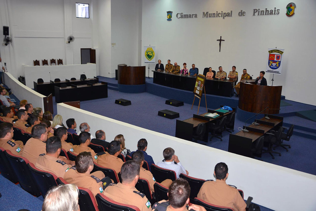 Na última sexta-feira (20), na Câmara Municipal, foi realizada a cerimônia de troca de comando da Polícia Militar em Pinhais. Durante a cerimônia de transmissão do cargo, também foram apresentados à comunidade 11 novos policiais militares que atuarão no município.
