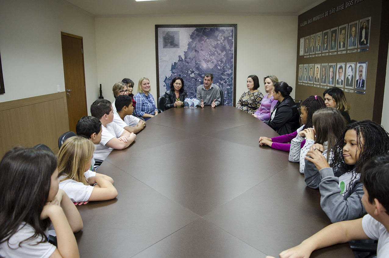 O prefeito Toninho Fenelon e a secretária de Educação Ema Zen receberam os alunos, direção e professores da Escola Municipal Angelina de Macedo, na manhã de terça-feira (25), para a entrega simbólica do Prêmio Ministério Público do Trabalho (MPT) na Escola..
