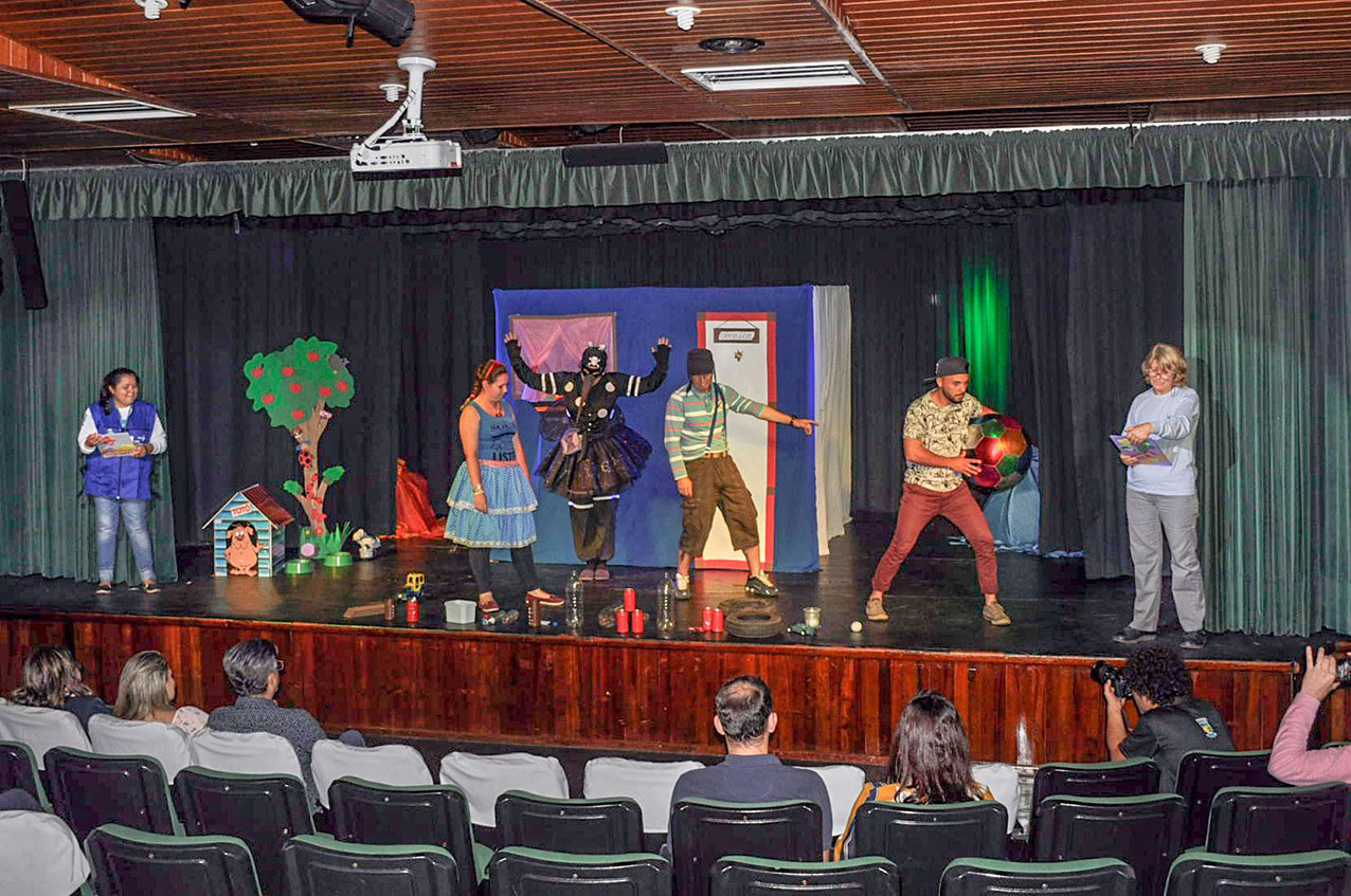 Recentemente o auditório Marcio José Moro do Centro Cultural Wanda dos Santos Mallmann recebeu a apresentação teatral “Todos contra a Dengue”. A iniciativa foi promovida pela Secretaria de Saúde com o apoio da Secretaria de Cultura, Esporte e Lazer.