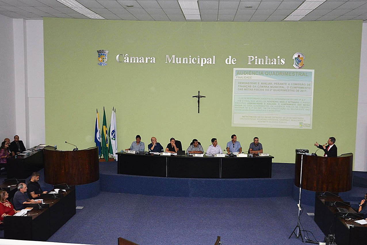 A Prefeitura de Pinhais, por meio da Secretaria Municipal de Finanças, realizou Audiência Pública para prestação de contas referente ao terceiro quadrimestre de 2017. O evento foi promovido na segunda-feira, dia 5, na Câmara Municipal e ocorreu em atendimento à Lei de Responsabilidade Fiscal para apresentação das despesas do Governo Municipal.