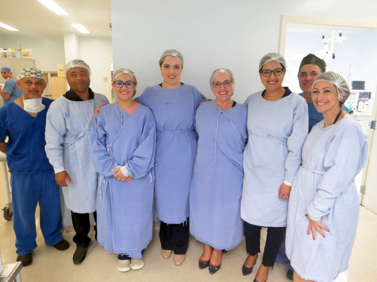 Participaram da primeira cirurgia as profissionais de saúde médica, a oftalmologista Sylvia Stec, a coordenadora do centro cirúrgico, Jenifer Goes Rosa, e da regulação, Yaskara Mazer.