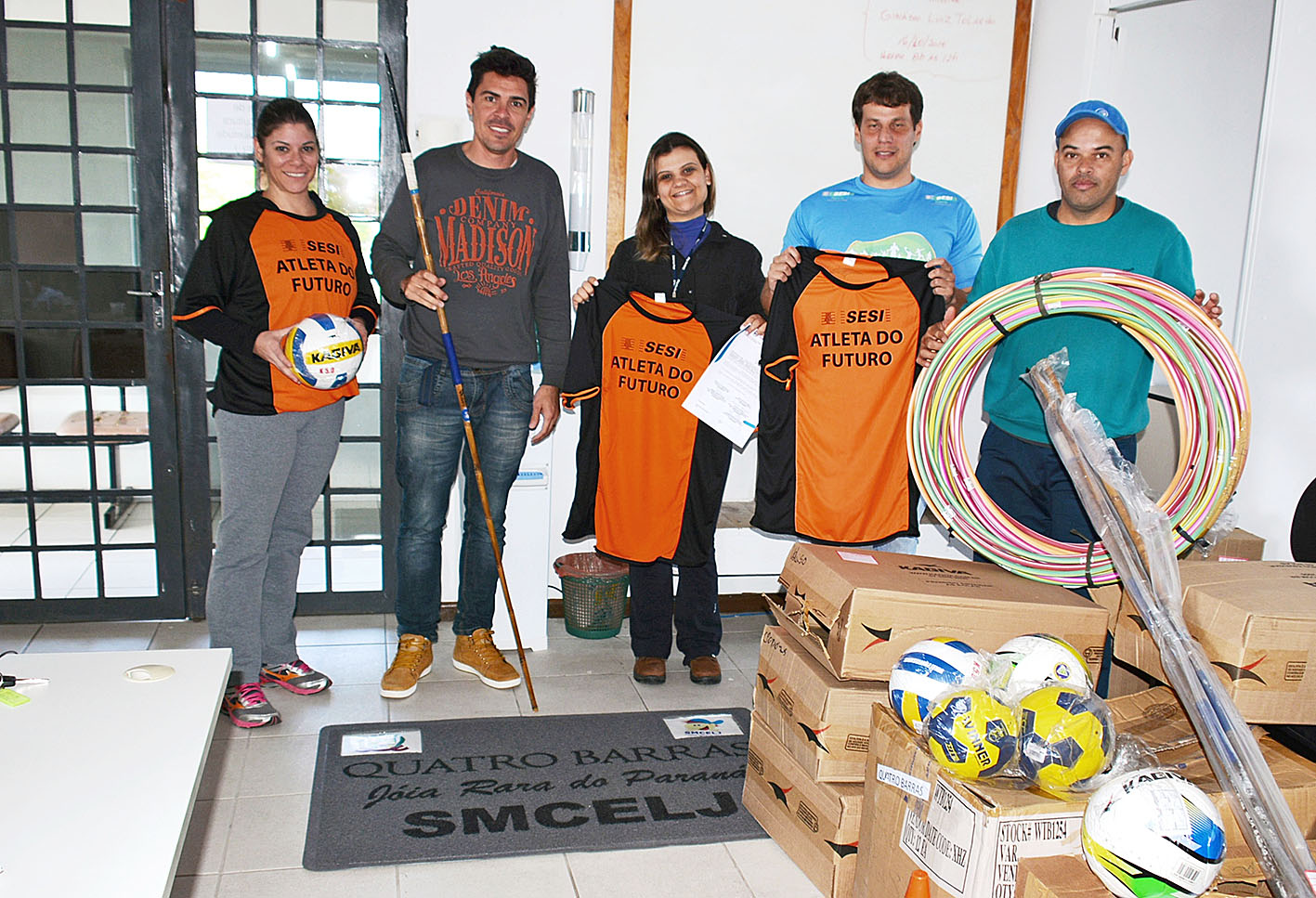 Na terça-feira (15), o Projeto recebeu novos materiais esportivos e uniformes, através da parceria com o Sesi. Ao todo, mais de 220 itens utilizados em modalidades individuais e coletivas, como bolas, redes, dardos, pesos, jogos de xadrez, cones, arcos e bambolês foram entregues na Secretaria Municipal de Esporte, Cultura, Lazer e Juventude, que coordena os projetos.