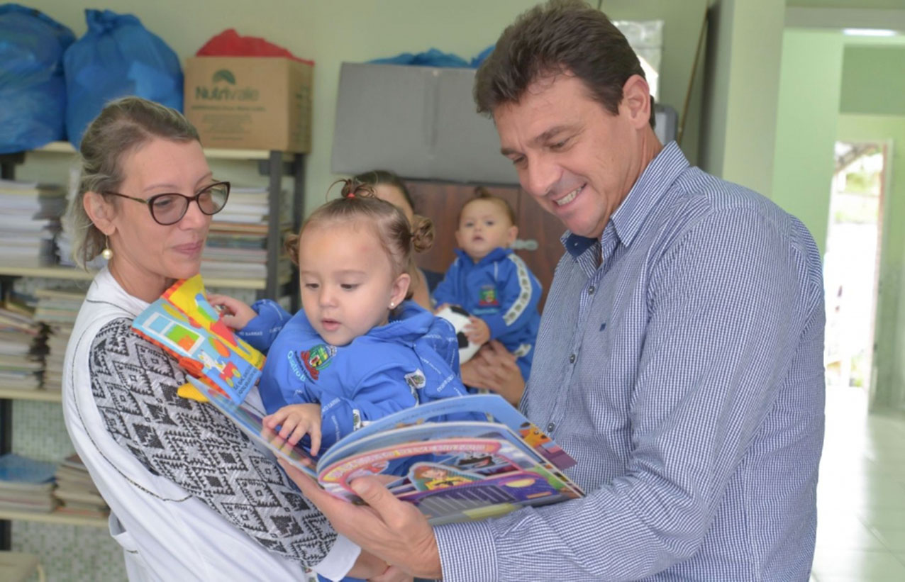 Quatro Barras já deu início à entrega dos uniformes e kits escolares em todas as unidades de ensino. No último dia 1º de março, o prefeito Angelo Andreatta (Lara) esteve no Cmei Tia Jaci, no Jardim Pinheiros, para acompanhar o início da distribuição dos materiais.