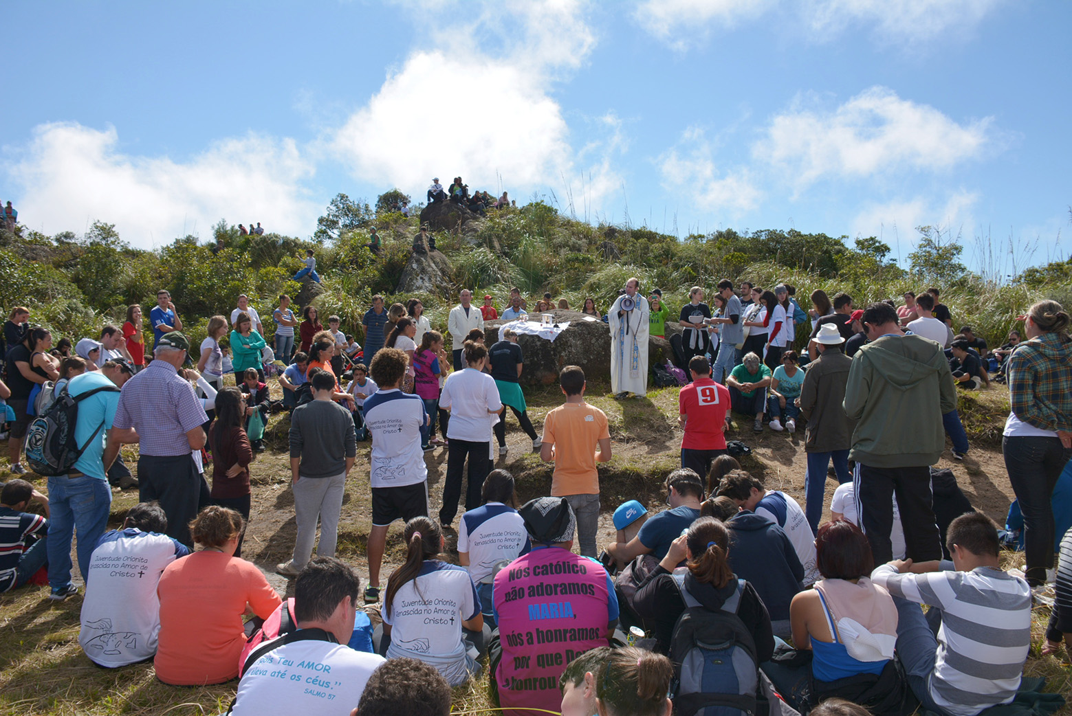 O dia ensolarado garantiu um belo cenário durante o evento, que segundo o padre Atalmir Gabriel, tem como maior objetivo orar pela paz. “Em tempos de conflitos e violência é importante rezar pela paz. Hoje ficamos surpresos com o número de pessoas. É sempre uma grande alegria ver a fé e a motivação das pessoas. Ao ver tanta gente, nos enchemos de esperança que o mundo pode ser um lugar melhor”, disse o padre, que celebra a missa há quatro anos.