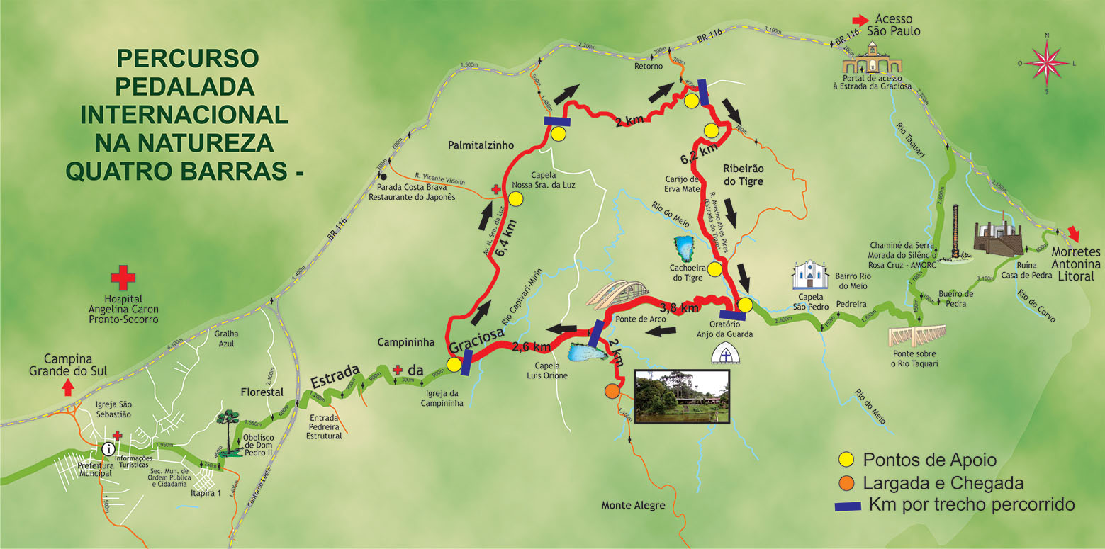 Quatro Barras realiza no próximo dia 12 de setembro a 4ª edição da Pedalada Internacional na Natureza. O percurso de 25 quilômetros passará pelas regiões do Monte Alegre, Campininha, Palmitalzinho e Ribeirão do Tigre, em trajetos preservados e pontos históricos.