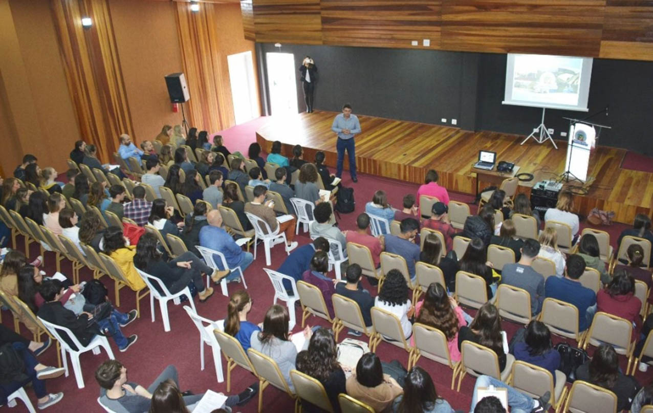 Os alunos do curso de Arquitetura e Urbanismo da Pontifícia Universidade Católica do Paraná – PUCPR – estiveram, na quarta-feira, dia 27, no Auditório da Secretaria de Educação para conhecer mais sobre o município de Quatro Barras. Para os mais de 160 alunos sob a orientação do professor André Luiz Turbay foram apresentados os aspectos e panoramas da cidade.