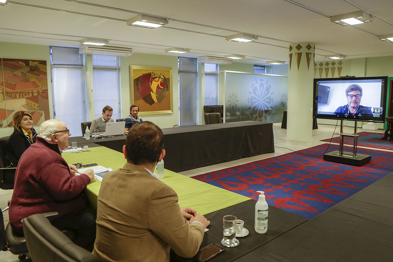 Na reunião virtual, o prefeito Rafael Greca estava acompanhado pela secretária Municipal de Educação, Maria Silvia Bacila; e pelo assessor de Relações Internacionais da Prefeitura, Rodolpho Zannin Feijó.