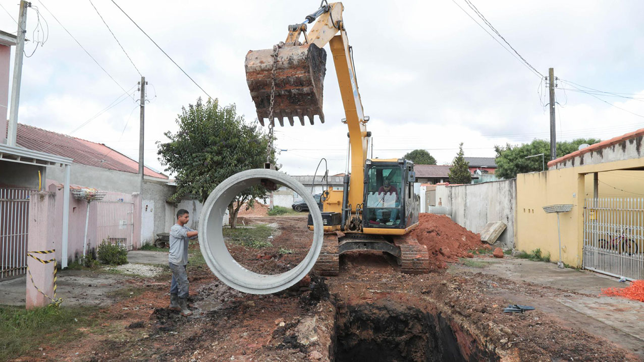 Tiveram início, nas últimas semanas, novas obras de pavimentação no bairro Santa Mônica. No momento estão sendo executados os serviços preliminares de drenagem na Rua Paulina Pereira da Luz Sobrinho, com a construção de amplas galerias para o manejo das águas pluviais. Nesta etapa, a Prefeitura de Piraquara também vai asfaltar a Rua Ouro Verde no bairro.