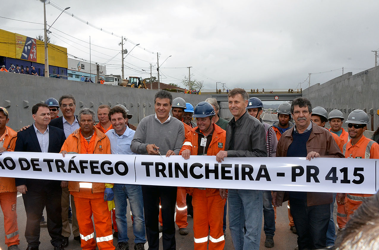 Junto com os prefeitos Luizão Goulart (Pinhais) e Marcus Tesserolli (Piraquara), além do secretário de Estado de Infraestrutura, José Richa Filho, o Governador Beto Richa liberou na última segunda-feira, dia 3, o trânsito na trincheira da Rodovia João Leopoldo Jacomel (PR-415) com as Avenidas Jacob Macanhan e Camilo Di Lelis.