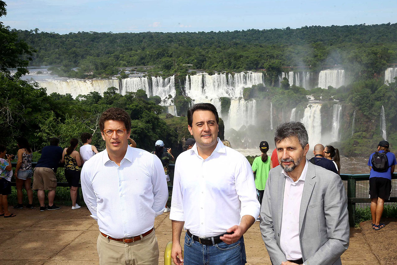 Durante o evento, o Governador ressaltou que todo o projeto de infraestrutura turística, que visa a geração de emprego e renda para a população, e, ao mesmo tempo, o desenvolvimento econômico do estado, será feito dentro de uma consciencia ambiental. “O Parque Nacional do Iguaçu é a prova máxima de que é possível conciliar desenvolvimento econômico com preservação ambiental”, comemorou Ratinho Júnior, destacando ainda a importância de Foz do Iguaçu. “Foz é a segunda cidade do Brasil mais visitada por estrangeiros. Sendo assim, não faz sentido a falta de um aeroporto que comporte voos internacionais, ou uma rodovia moderna com pistas duplas. Com certeza, esses assuntos serão prioridades no nosso governo”, afirmou.